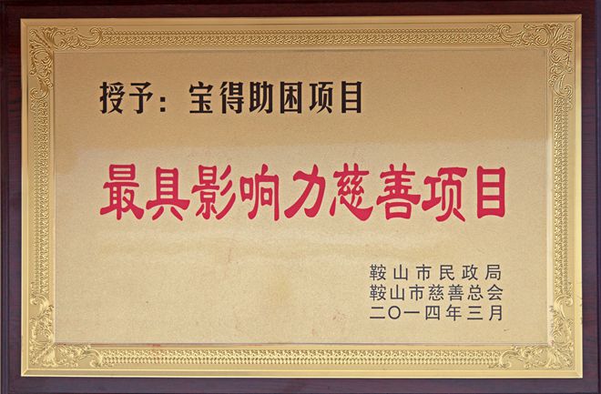3月7日,在鞍山市慈善總會第三次會員大會上,公司榮獲“最具愛心慈善捐贈企業(yè)”、“最具影響力慈善項(xiàng)目”榮譽(yù),董事長榮獲“最具愛愛心慈善楷模”榮譽(yù)稱號。