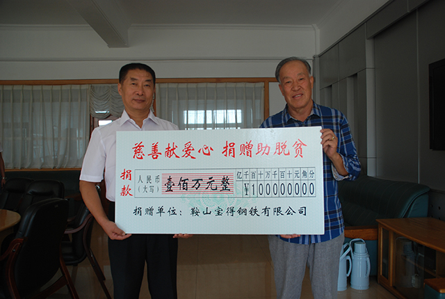 9月1日,《中華人民共和國慈善法》正式頒布實施的當(dāng)天下午,鞍山寶得鋼鐵公司的一位代表風(fēng)塵仆仆來到市慈善總會,捐出專項善款100萬元,并轉(zhuǎn)達了寶得公司董事長張永全的話:“我要兌現(xiàn)承諾,只要企業(yè)經(jīng)濟效益好了,只要我們還有這個能力,就要繼續(xù)獻愛心,就要幫助那些有困難的人。”